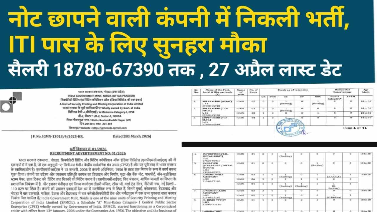 IGM Form 2026: अगर आप सरकारी नौकरी की तैयारी कर रहे हैं और एक सुरक्षित करियर की तलाश में हैं, तो आपके लिए शानदार मौका सामने आया है। भारत सरकार के अधीन काम करने वाली Security Printing and Minting Corporation of India Limited की यूनिट इंडिया गवर्नमेंट मिंट (IGM) ने विभिन्न पदों पर भर्ती के … Read more